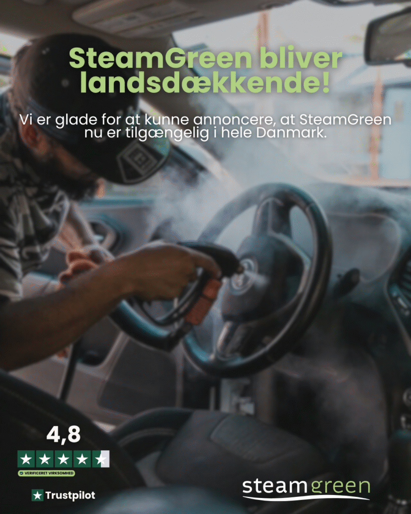 SteamGreen bliver landsdækkende, og vi er mere end stolte af endelig at kunne annoncere denne store milepæl. Efter år med fokus på kvalitet, mobilitet og kundetilfredshed har vi – i samarbejde med stærke og erfarne partnere – nu udvidet vores service til hele Danmark. Det betyder, at både private og erhverv i alle landsdele får adgang til vores mobile damprensningsløsninger, leveret direkte til døren.